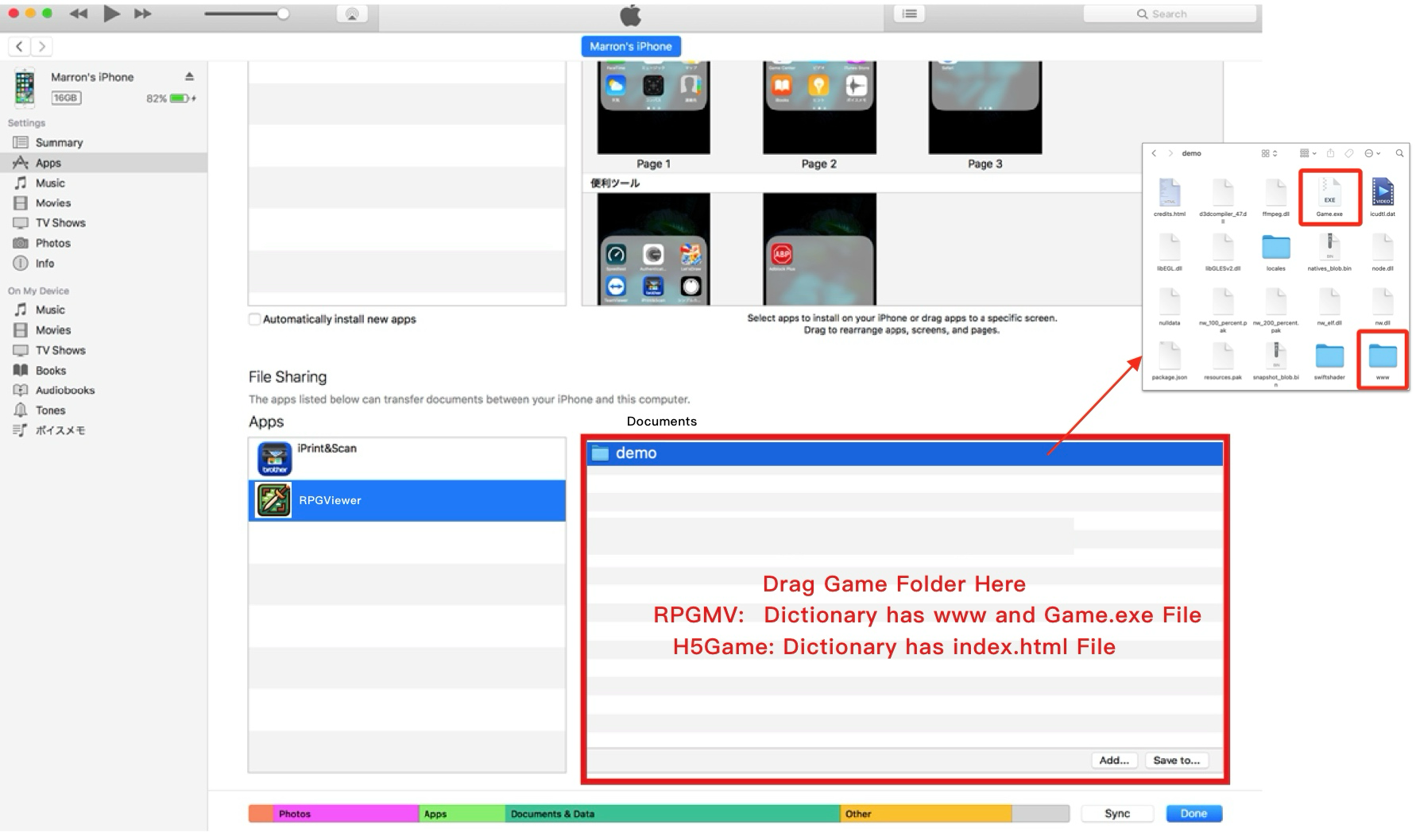 通过iTunes导入,把包含游戏的文件夹,导入到